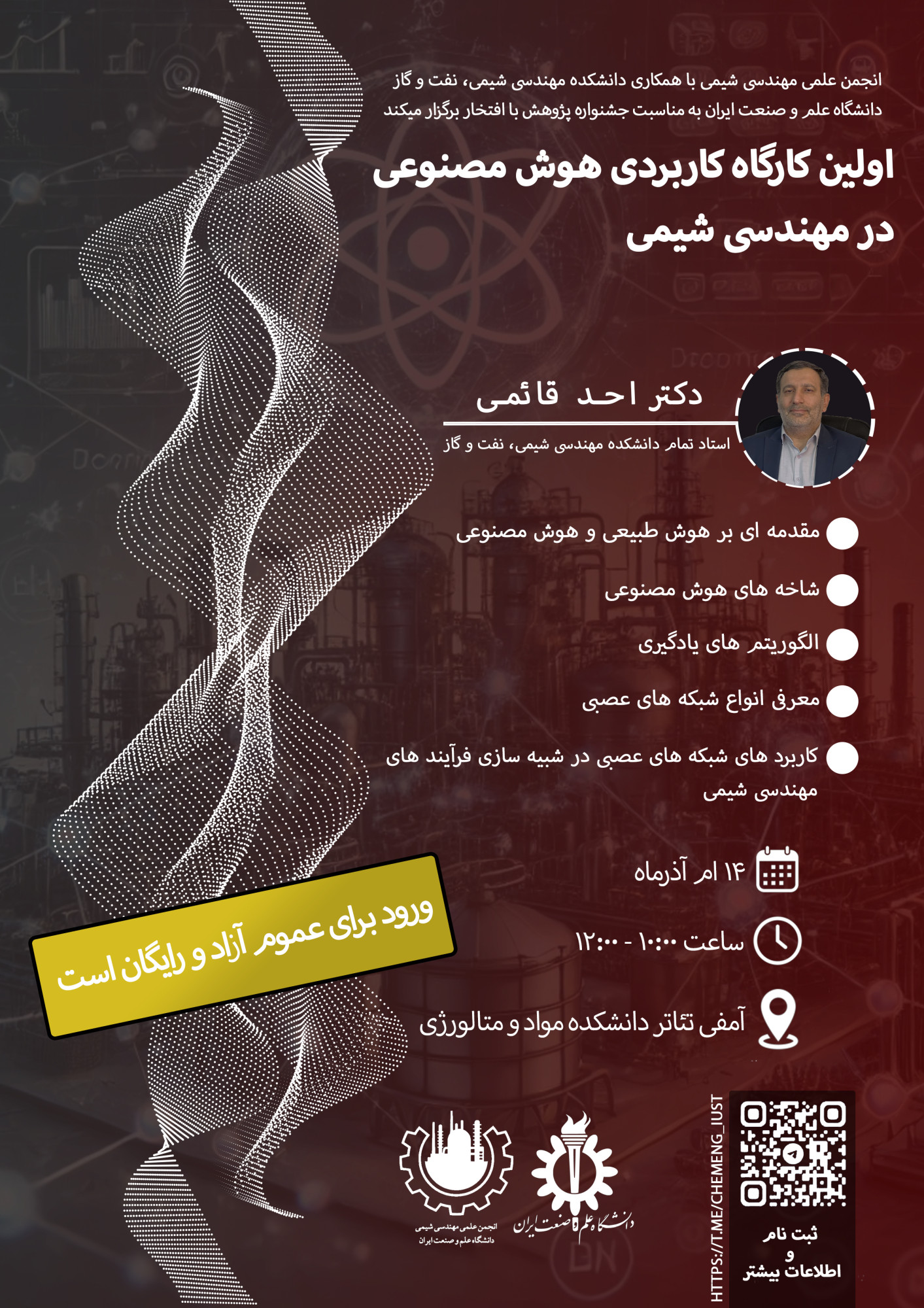 “اولین کارگاه کاربردی هوش مصنوعی در مهندسی شیمی”